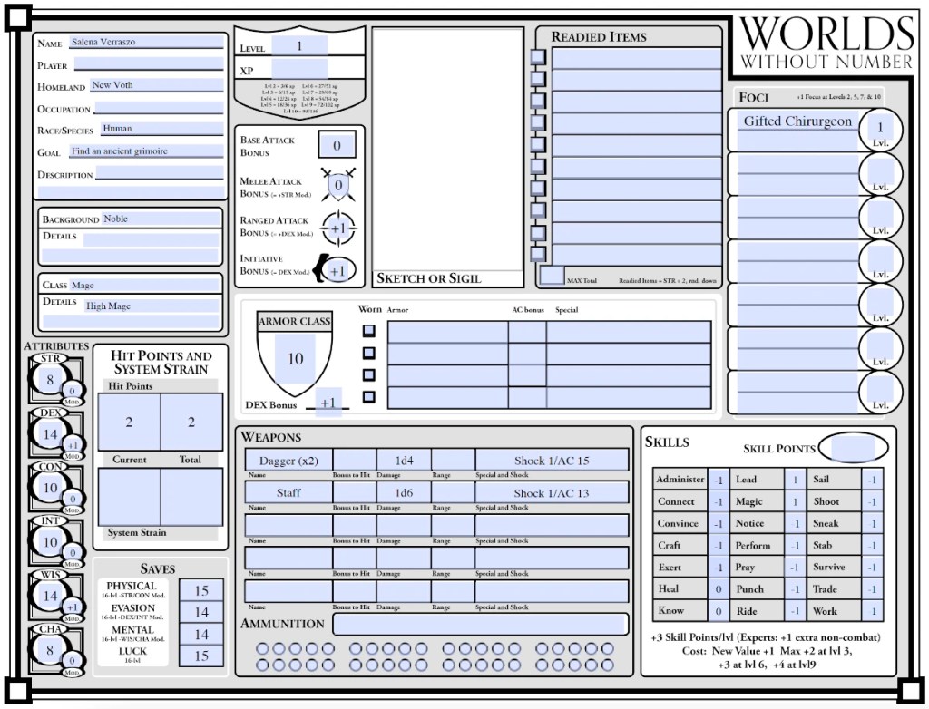We’re winding up the three published game systems by Kevin Crawford and Sine Nomine Publishing by creating a Worlds Without Number character for the #CharacterCreationChallenge.