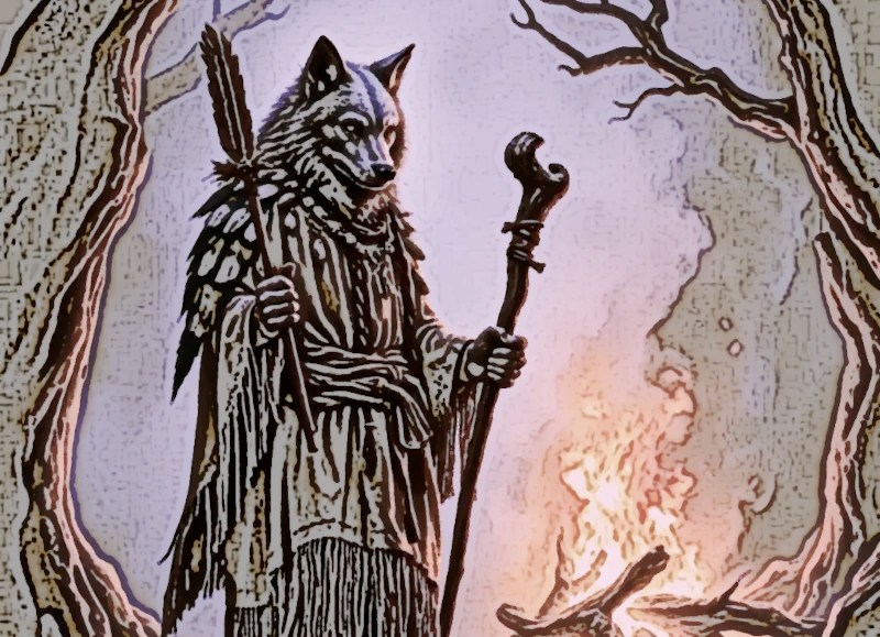 I’m leaning towards the creation theory in which the wolf god created both aspects of his spirit – the animal and the sophisticate. This gives the character a connection to the divine that will support various spellcasting mechanics as well as common character motivations.